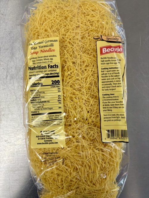 Bechtle Traditional German Vermicelli Soup Egg Noodles are crafted from high-quality durum wheat semolina and cage-free eggs — ideal for adding heartiness to soups and broths