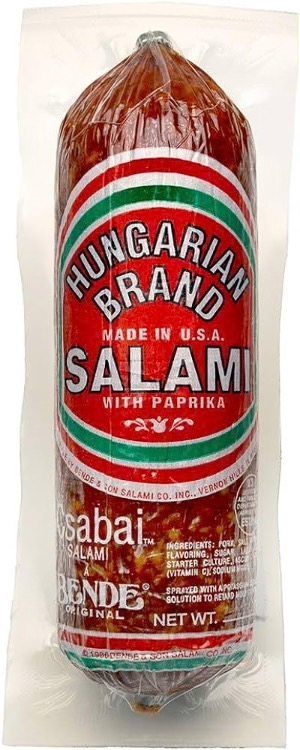 Bende Salami Hungarian Style is a traditional Hungarian specialty made from high-quality pork and seasoned with a classic blend of spices, including garlic, pepper, and paprika. Its rich flavor and time-honored recipe make it a true delicacy.