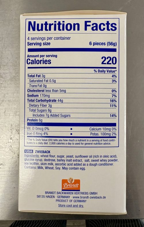 Brand Zwieback Rusk 8 oz