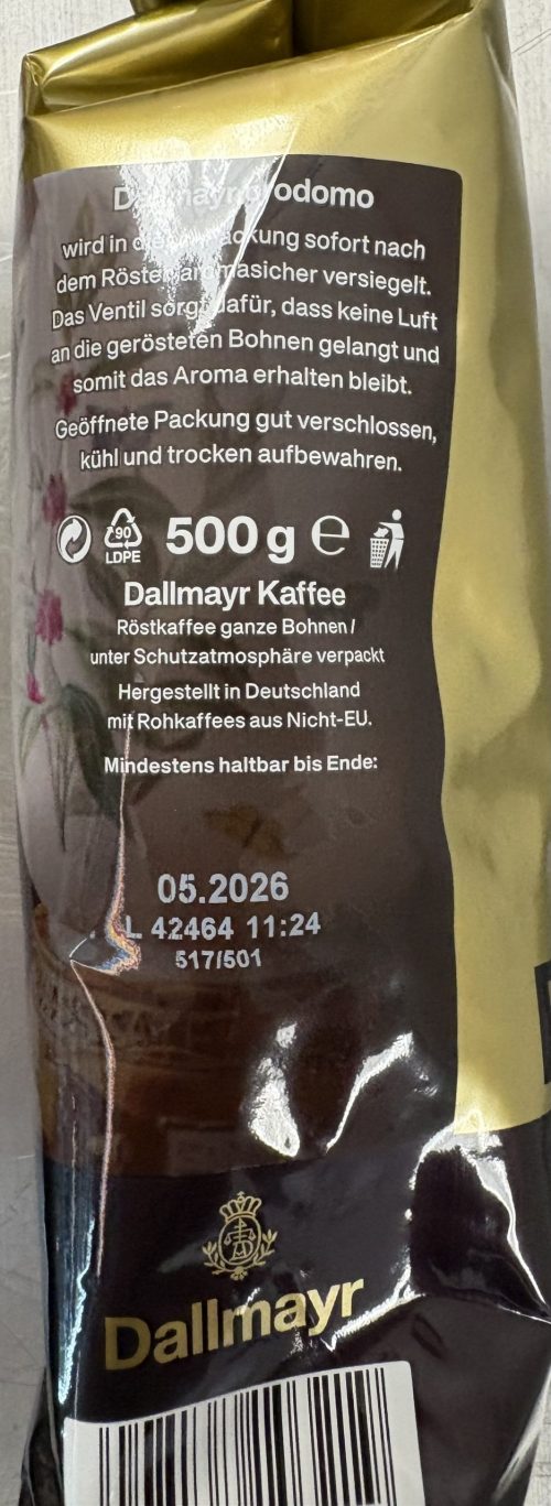 “Dallmayr prodomo is a premium blend made from the finest Arabica highland beans sourced from the world’s best growing regions. Its distinctive taste is shaped above all by Arabica beans from the fertile southern provinces of Ethiopia – the original homeland of coffee.”