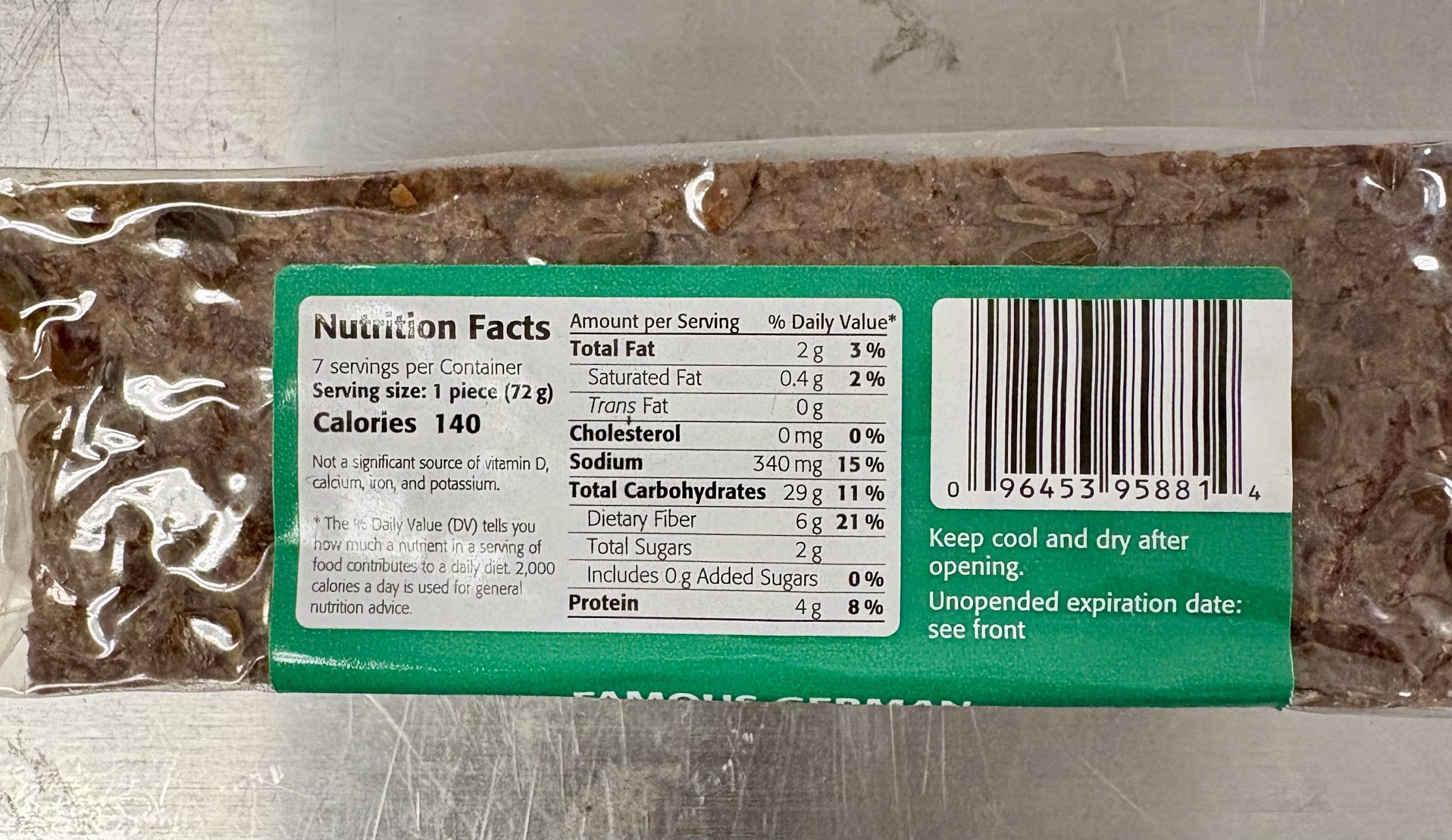whole kernel rye, water, whole rye flour, oat kernels, barley kernels, linseed, iodized salt, sesame, yeast