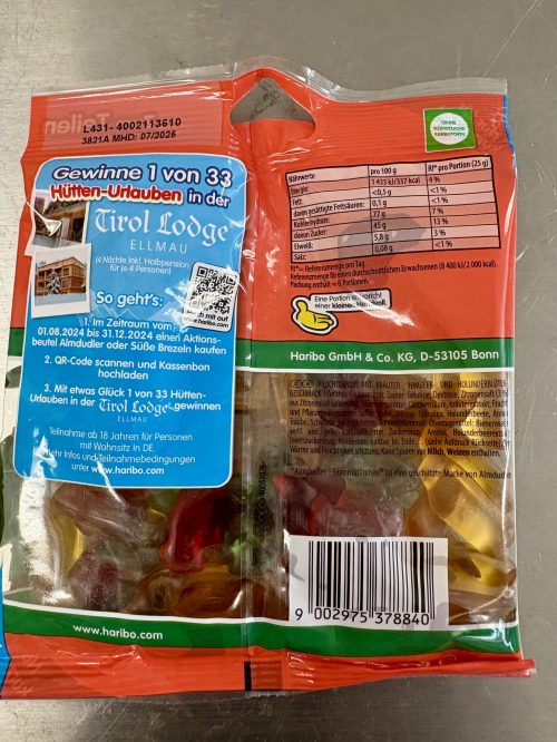glucose syrup, sugar, gelatin, and dextrose, with added ingredients like citric acid, artificial and natural flavors, and coloring agents