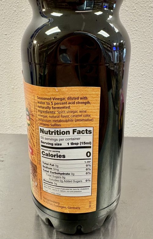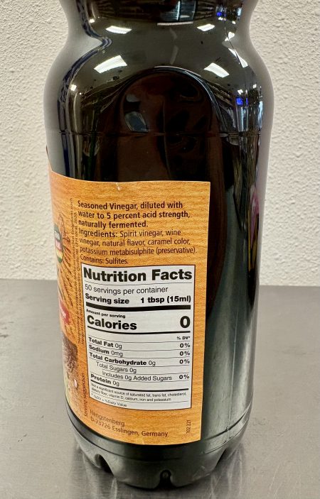 Spirit vinegar, wine vinegar, natural flavor, caramel color, antioxidant potassium metabisulfite (preservative)