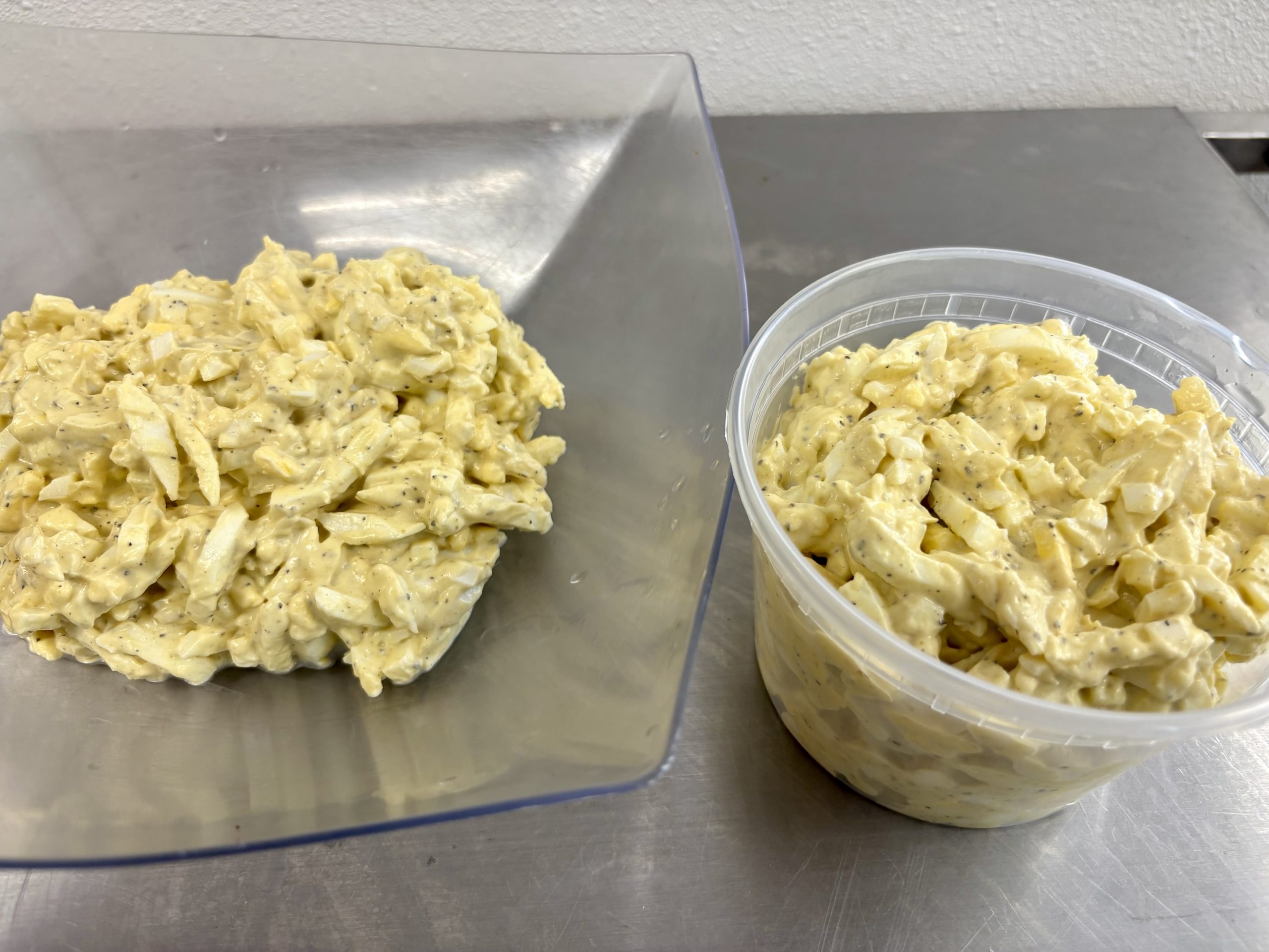 boiled Egg, Mayonnaise, Mustard, Salt, Pepper, Onion Powder, Garlic Powder