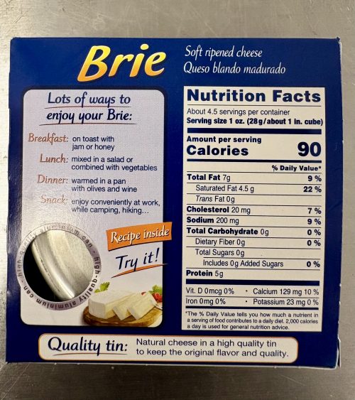 pasteurized milk, cream, salt, microbial rennet, bacterial cultures, and ripening cultures.