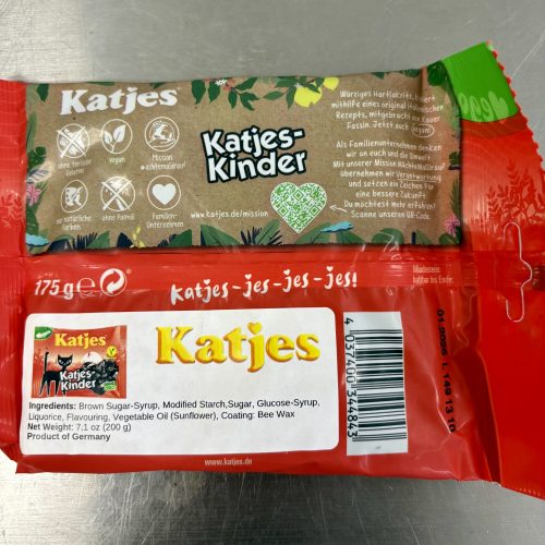 Modified starch, brown sugar syrup, sugar, glucose syrup, 5% licorice juice, flavors, vegetable oil (sunflower), coating agent: beeswax, white and yellow
