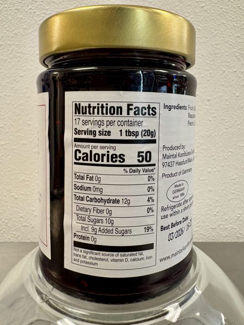 This German-made fruit spread features a flavorful blend of forest berries and is crafted in Bavaria, near the Black Forest. Highlighting whole wild blueberries, it’s made with natural ingredients to deliver the authentic taste of traditional Bavarian preserves — perfectly balanced between sweetness and tartness.