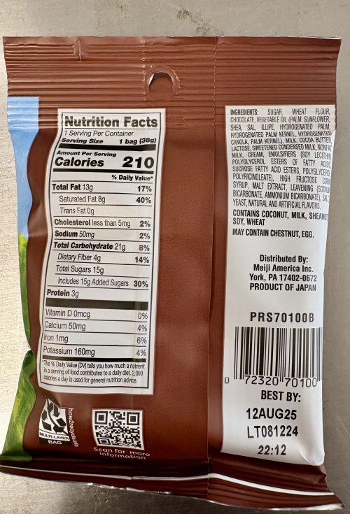 sugar, wheat flour, cocoa mass, various vegetable oils, whole milk powder, cocoa butter, lactose, and other ingredients. Specifically, the cracker portion contains wheat flour, vegetable oils, and other ingredients. The chocolatey cap contains ingredients like sugar, cocoa mass, whole milk powder, cocoa butter, and emulsifiers