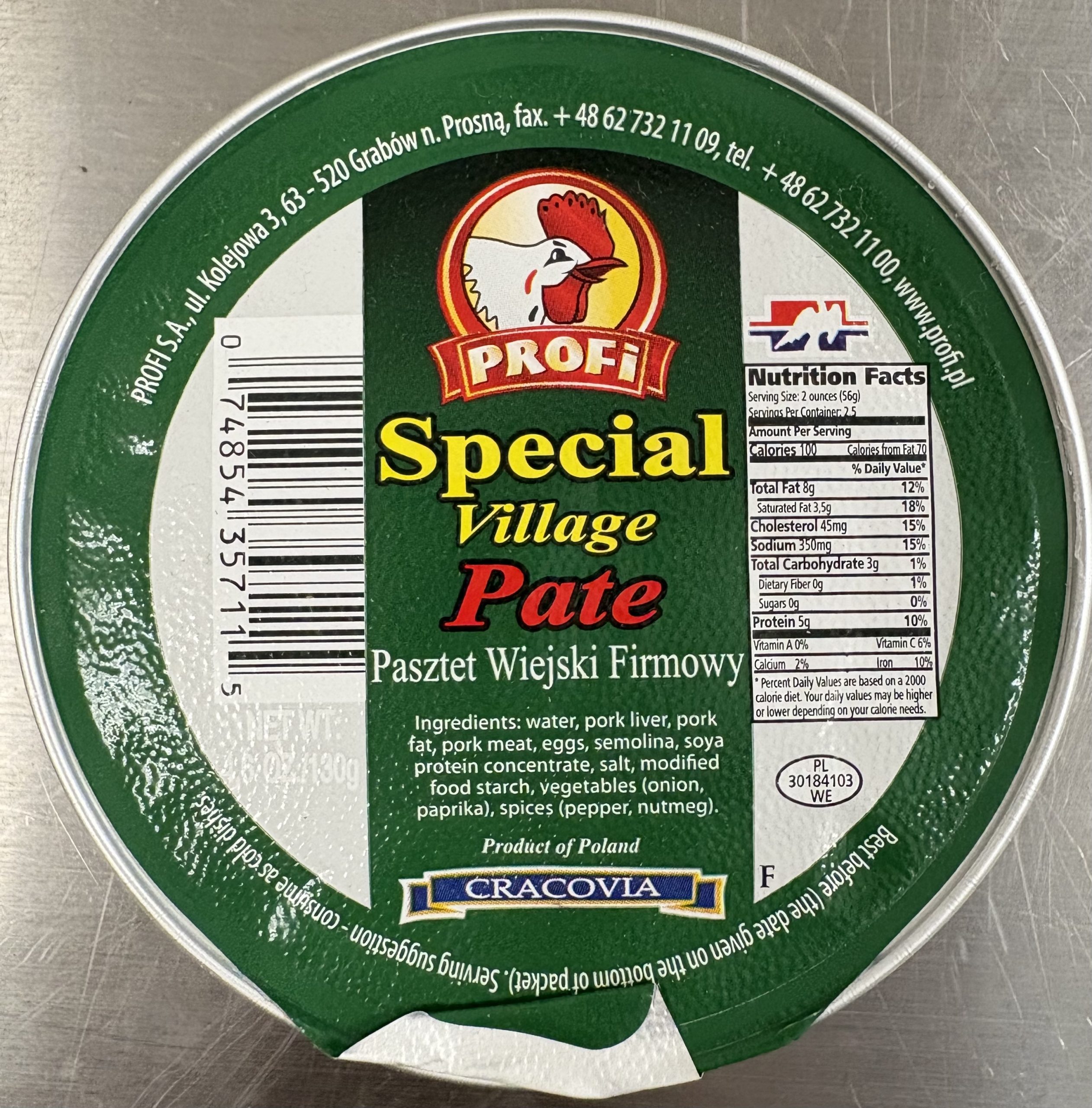 Ingredients: water, pork liver, pork fat, pork meat, eggs, semolina, soya protein concentrate, salt,