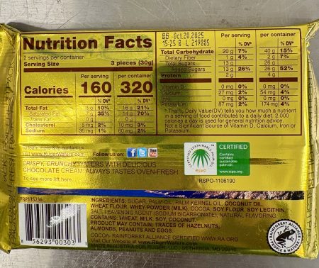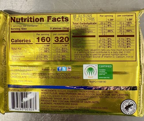 Sugar, Palm Oil, Palm Kernel Oil, Coconut Oil, Wheat Flour, Whey Powder (Milk), Cocoa, Soy Flour, Soy Lecithin, Salt, Leavening Agent (Sodium Bicarbonate), Natural Flavoring