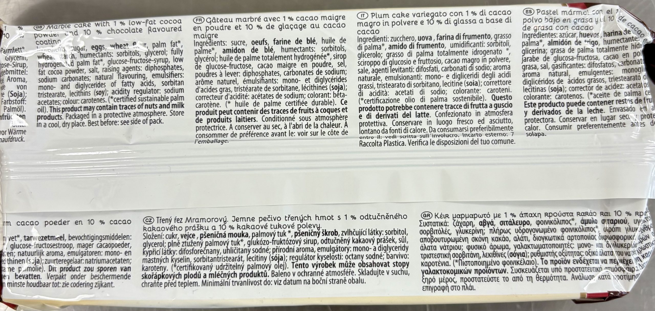 Succulent marble cake with low-fat cocoa powder and 10% chocolate coating. Based on a traditional recipe with a fine marbling.